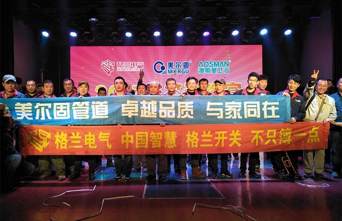 此次格蘭電氣攜手美爾固管道、澳斯曼衛(wèi)浴等品牌整合行業(yè)資源,在發(fā)揮行業(yè)群體優(yōu)勢的同時,促進行業(yè)成員之間的信息溝通交流與合作,從而更有效地進行市場資源的共享,信息的互通,財富的共贏,也能為市場創(chuàng)造良好的市場環(huán)境。在璀璨的燈光秀下,在激情澎湃的開場音樂聲中,鞍山答謝會正式開始。